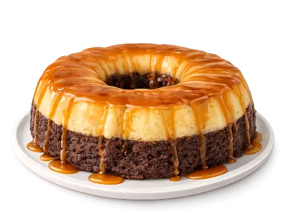 A layer dessert that combines chocolate cake , flan, and caramel